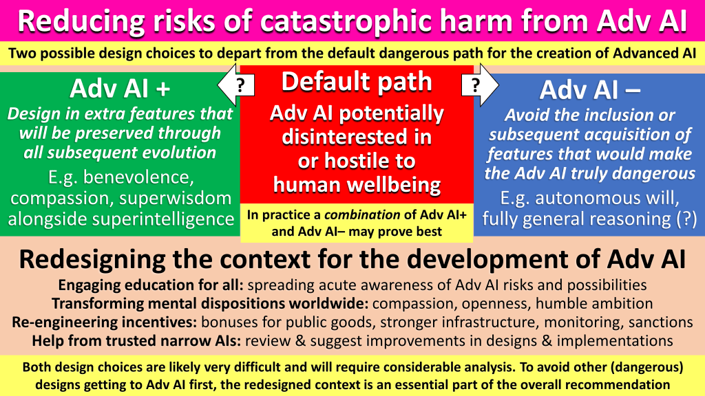 Here’s the context for the argument. I have been making the case that one option which should be explored as a high priority, to reduce the risks of catastrophic harm from the more powerful advanced AI of the near future, is to avoid the inclusion or subsequent acquisition of features that would make the advanced AI truly dangerous.